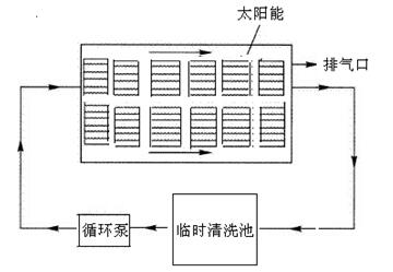 1、打開太陽(yáng)能熱水器進(jìn)水口和出水口,現(xiàn)場(chǎng)建立臨時(shí)水池和循環(huán)系統(tǒng)。如圖下: