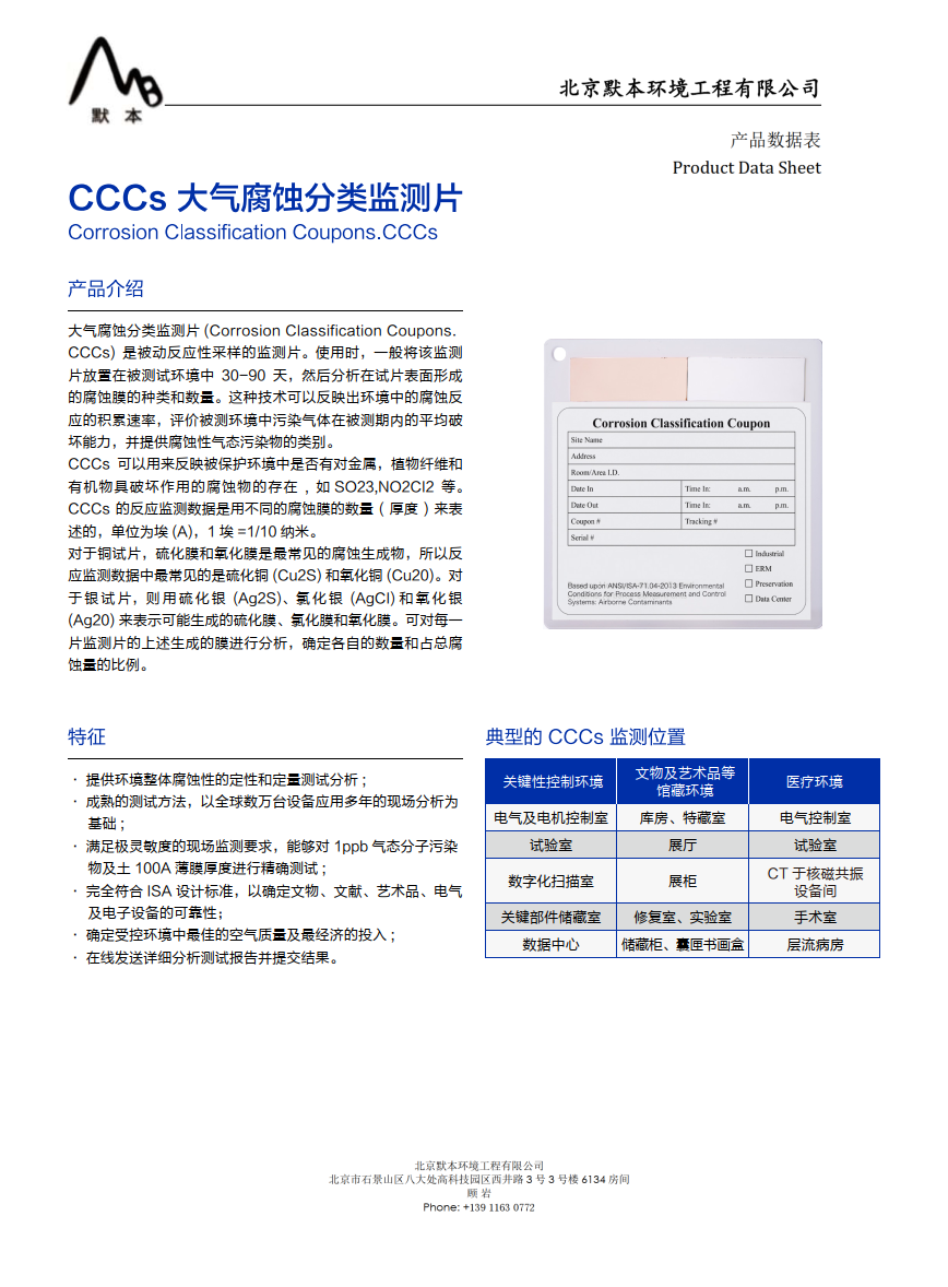 默本化學(xué)過(guò)濾材料(EK大氣腐蝕分類(lèi)監(jiān)測(cè)片)